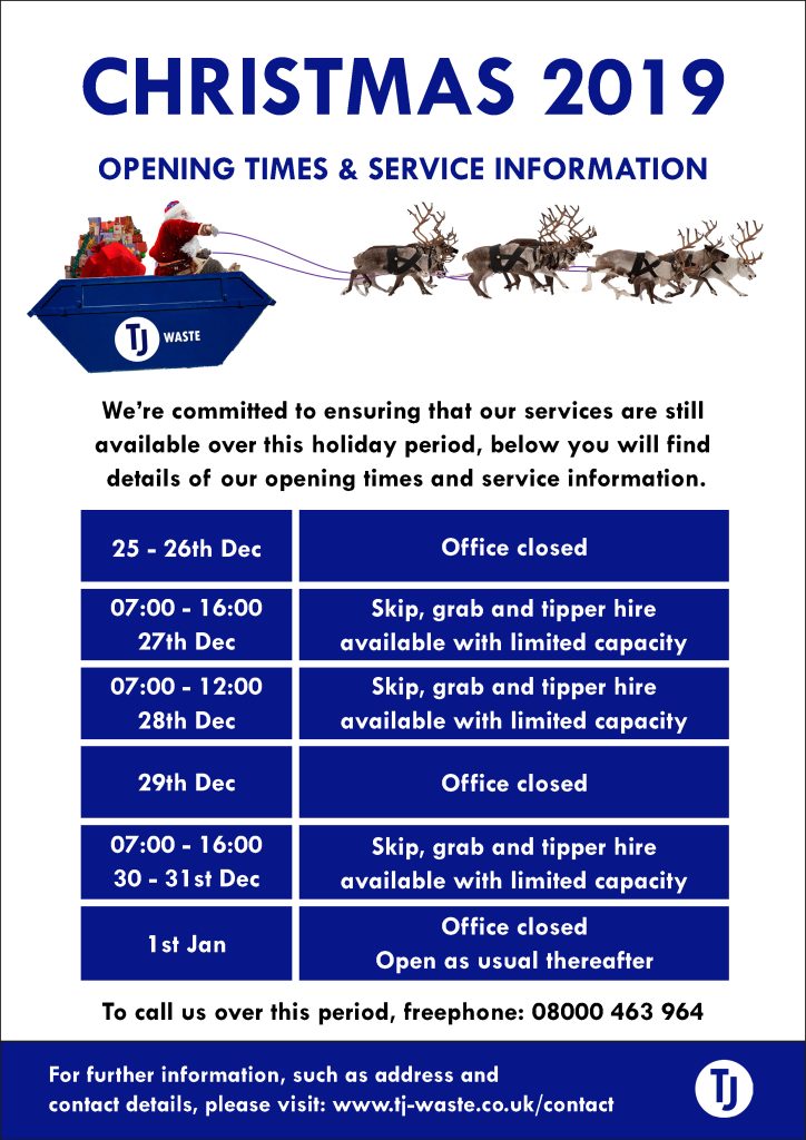 Do you need to contact us over the festive period? Here’s our opening times and service information.
